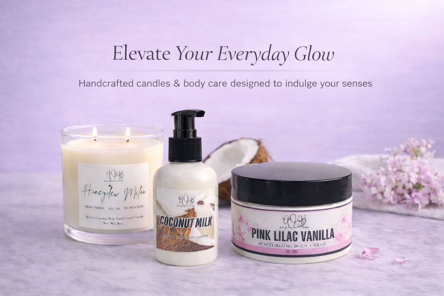 Our Signature Wicks Collection features timeless, everyday fragrances designed to elevate your space. Each candle is hand-poured with our signature apricot coconut wax for a clean, even burn and a beautifully balanced scent throw.