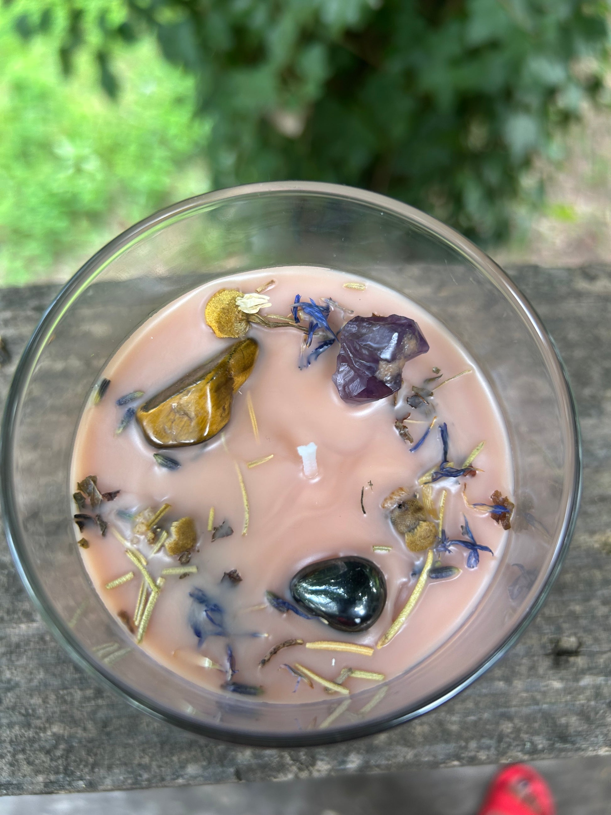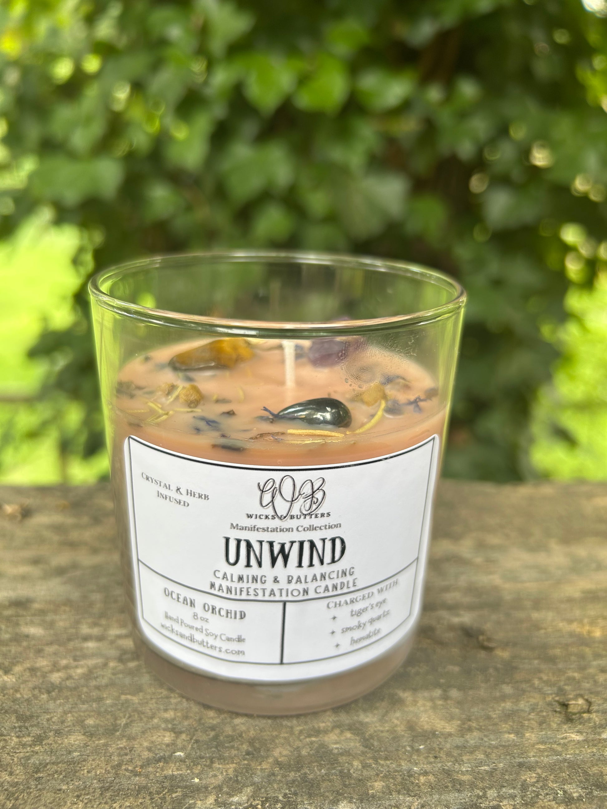 The “Unwind” candle is a grounding, stress-relieving candle that helps center the mind and body. This candle is perfect for decompressing after a long day, clearing mental clutter, and rebalancing your energy.