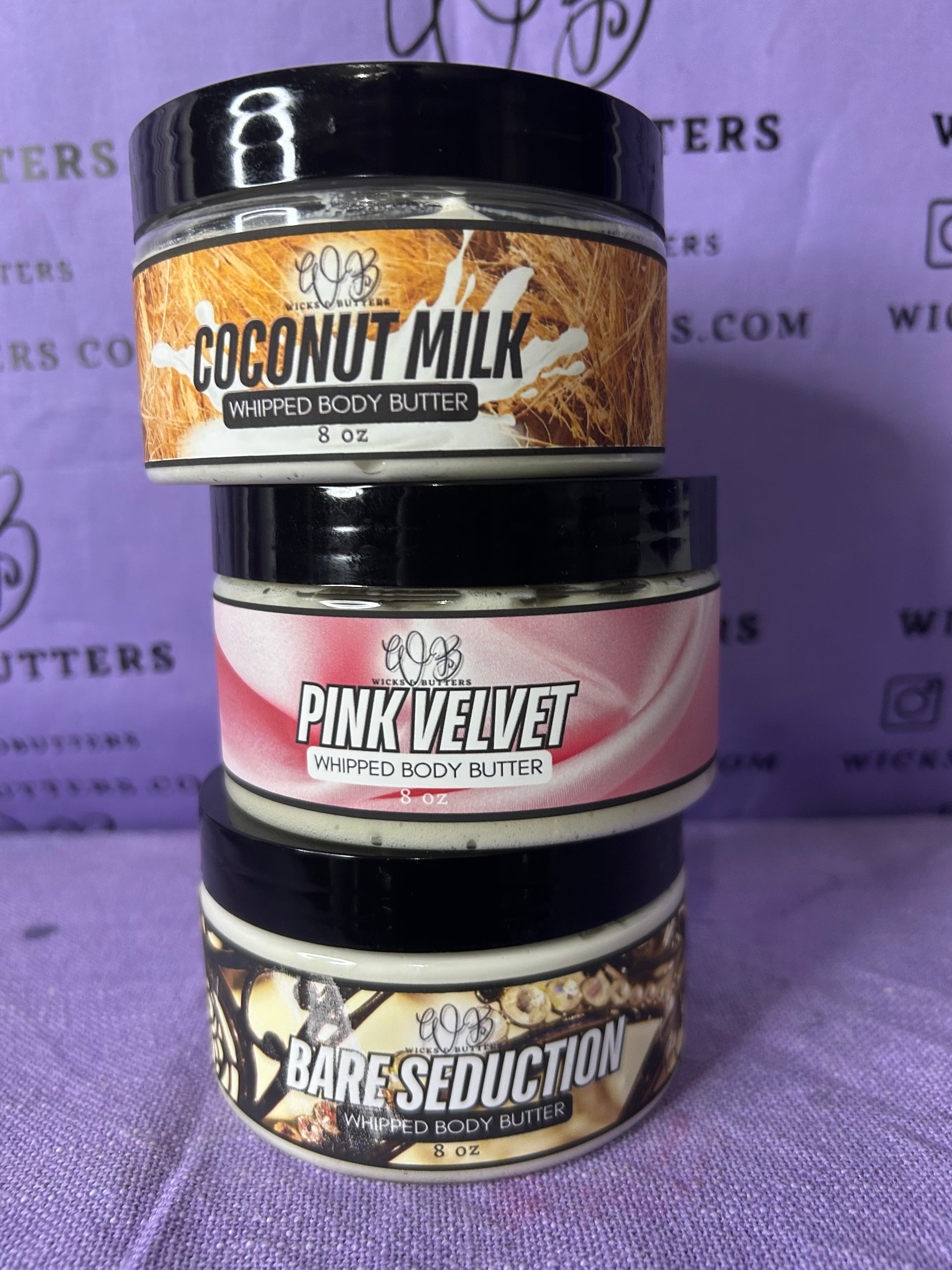 Whipped is our raw shea butter blended with mango butter into a light, fluffy, deep penetrating moisturizing body butter. Its non-greasy formula absorbs quickly leaving your skin soft and radiant. Infused with oils such as coconut, jojoba, sweet almond oil and vitamin e.